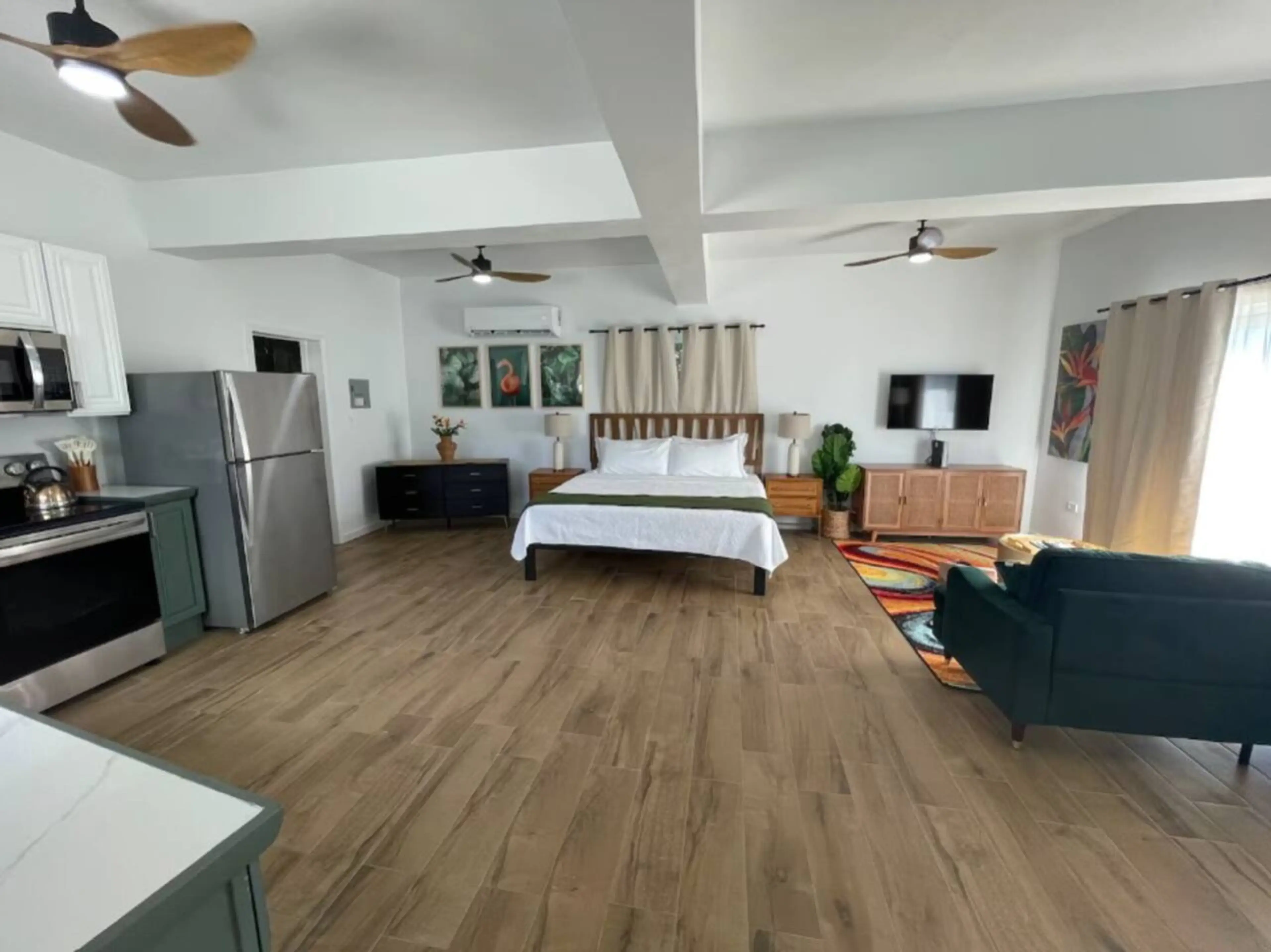 Imagine a newly built one-bedroom studio in a prime location minutes from the #1 beach on St. Thomas (Magens Bay), shops, gas stations, bars, restaurants and the ferry terminal for island hopping. The gated property offers parking, discounted Jeep rentals, High-Speed Wi-Fi, AC, Generator, paddle boa...